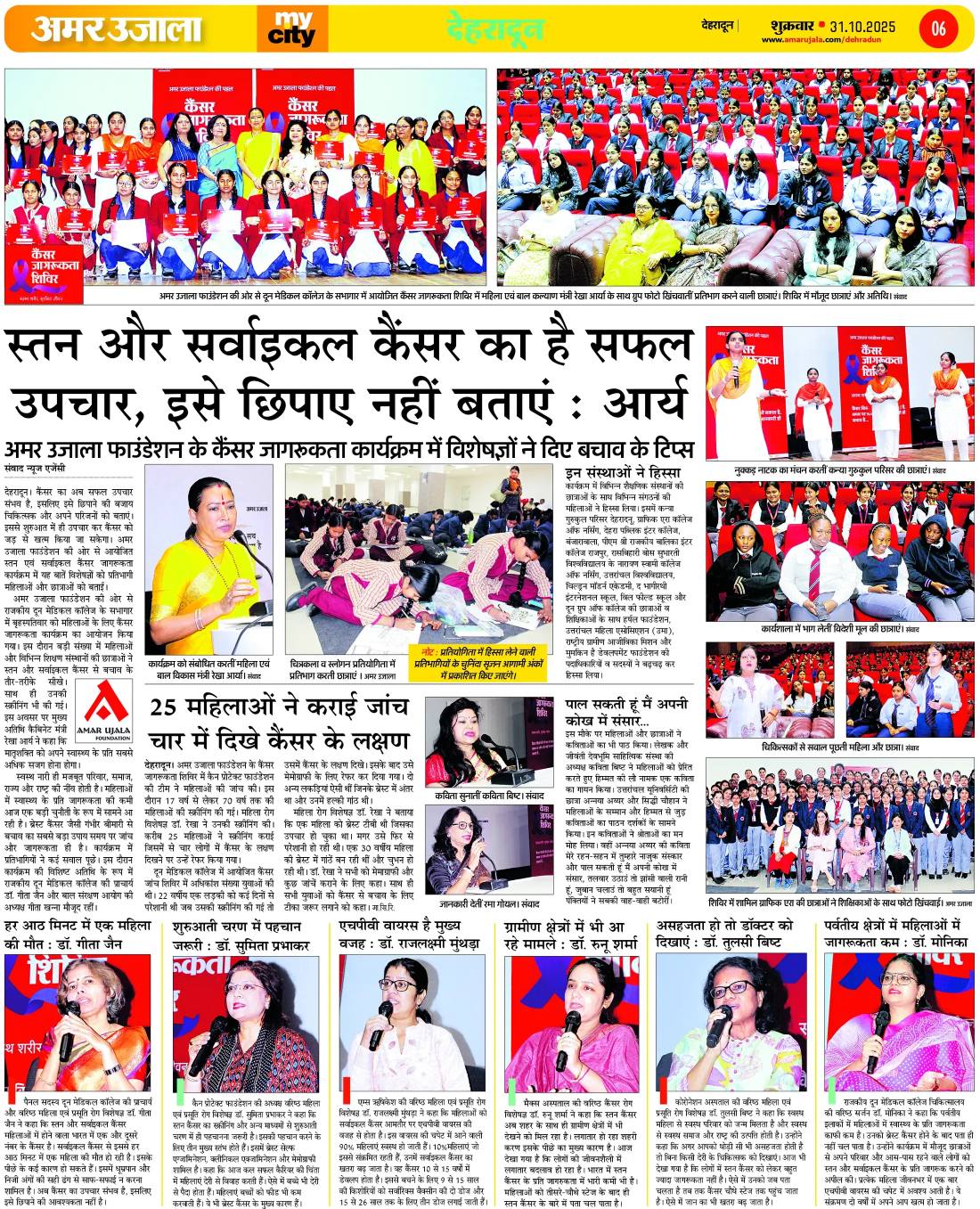 One of the key highlights of Breast Cancer Awareness Month 2025 was a powerful collaborative program organized by Can Protect Foundation and Amar Ujala Foundation on 30th October 2025 at the Doon Medical College Auditorium, Dehradun.